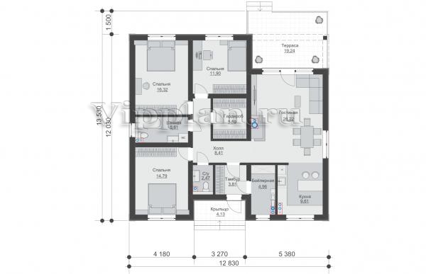 | Размеры дома: | 12.83м×13.53м |